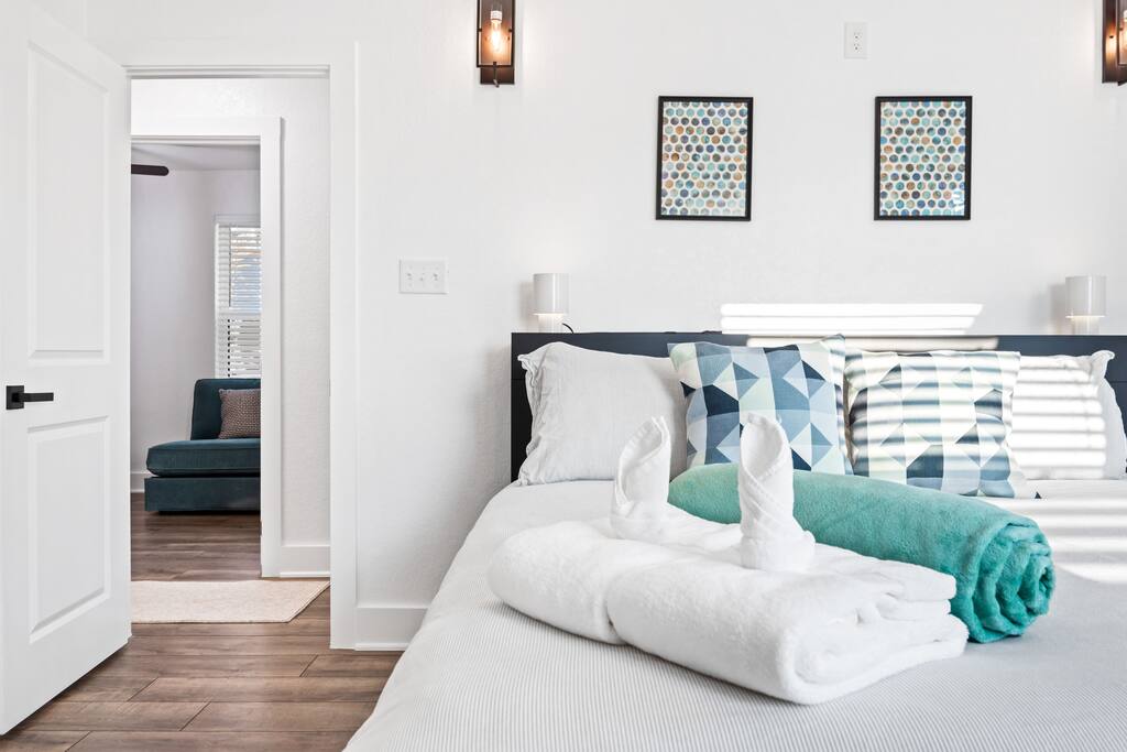 Welcome to your modern San Antonio retreat! This newly remodeled home with guest house combines comfort, style, and convenience—just minutes from Lackland Air Force Base, SeaWorld, Fiesta Texas, the River Walk, The Alamo, and downtown. Whether you’re here for a BMT graduation, a family vacation, or a quick getaway, you’ll have everything you need for a relaxing and memorable stay. What you’ll love about the space: *4 bedrooms with comfortable beds and flexible sleeping options *3 spacious full bathrooms with roomy showers *Fully equipped kitchen + guesthouse kitchenette, both with Nespresso coffee makers *2 living rooms with smart TVs and an Xbox 360 in the main house *2 dining areas with seating for 10 *Modern, clean design with cozy touches throughout *Free and easy parking on-site Peaceful setting with quick access to top attractions and local dining Designed with both comfort and functionality in mind, this home offers plenty of room for families, groups, or solo travelers. After a day of exploring San Antonio, return to a quiet retreat where you can cook, gather, and recharge before your next adventure.